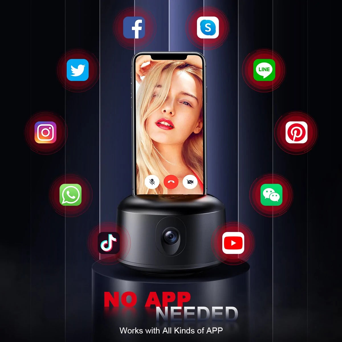The perfect way to level up your projects: the 360 Degree Auto-Face Tracking Camera Mount. This multi-functional device simplifies professional projects and takes casual vlogging, streaming, or photo sessions to the next level. With features like automatic face/body tracking and 360° rotation, combined with a 10 hour rechargeable battery life, you won't ever have to worry about keeping up with the action. Additionally no special apps are required; just mount your smartphone or tablet into the adjustable holder and press the power button to get started. For use with different smartphones and tablets, clip-fit mounting system allows for secure attachment regardless of size. Lastly, attach it to any tripod stand using its standard 1/4" interface for adjustable shooting angles and heights. Whether you're bombing hills on your electric skateboard or trying out a new recipe in the kitchen – let the 360 Degree Auto-Face Tracking Camera Mount be your camera paparazzi!