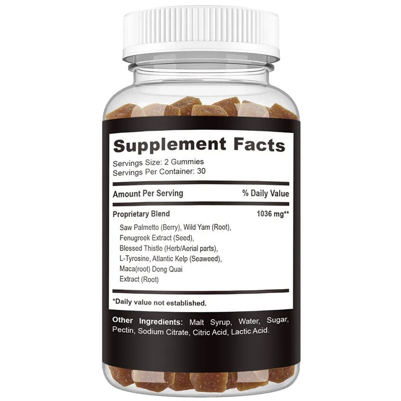 Main nutritional components: saw palm (berry), wild yam (root), parsley extract (seed), blessing thistle (grass/aerial part), L-tyrosine, Atlantic Ocean