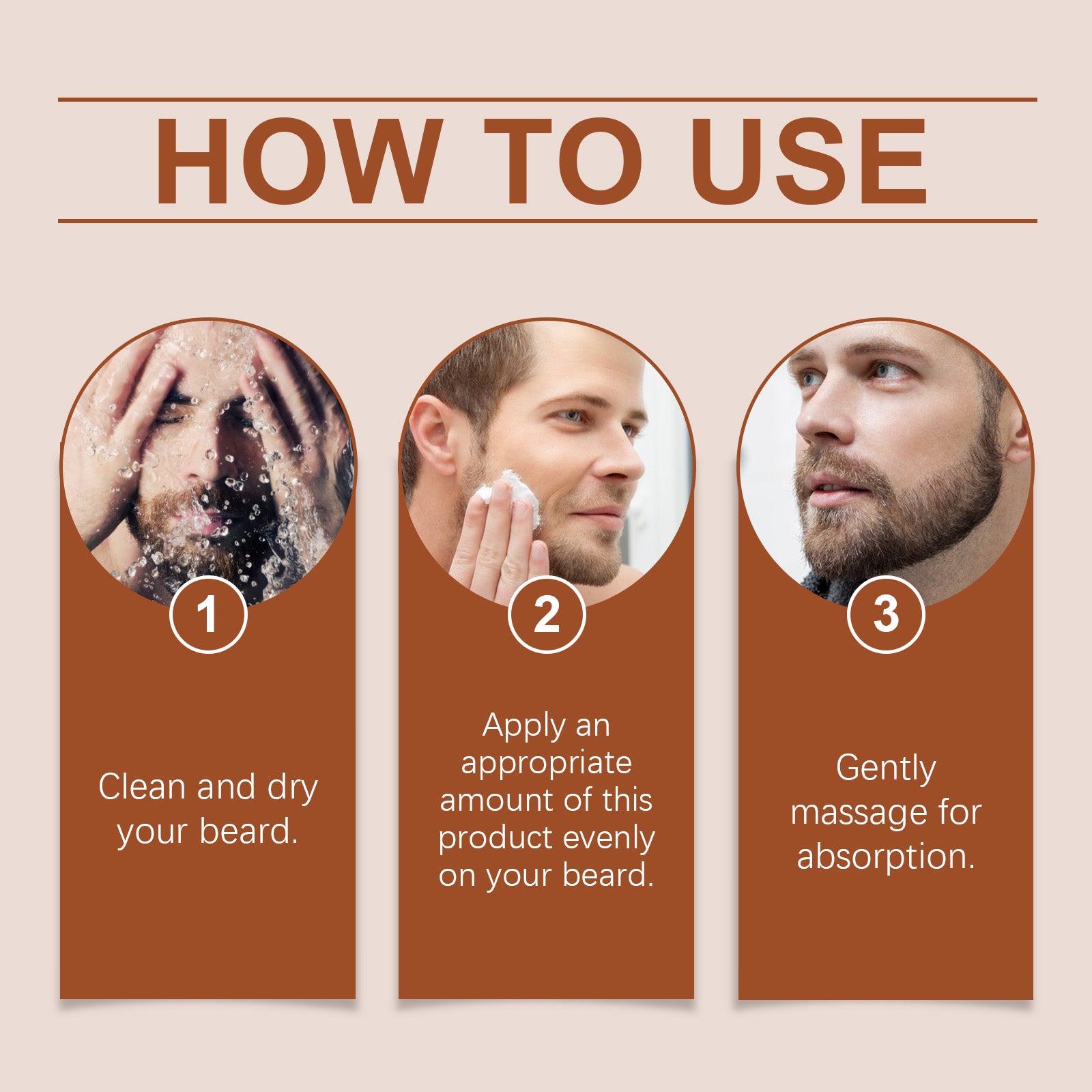 Our men's beard care cream contains beeswax, tocopherol (vitamin E). It can deeply nourish beard and skin, improve skin texture and reduce dryness. The way to use it is simple: clean and dry your beard. Apply appropriate amount of this product evenly to the beard. Gently massage to absorb. And can reduce itching, make the beard smooth and easy to manage, feel soft.