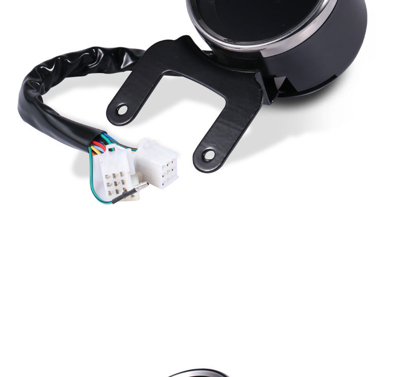 Instrument function: electronic speed, electronic mileage, time display, neutral gear display, gear display, fault light display, ABS display, water temperature display, fuel quantity display, headlight display, high beam display, steering display and other functions