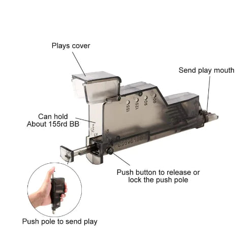 - Dimension & Color: High-grade rapid 6mm BB speed loader in black color with a high-quality steel spring for faster resetting of the plunger.