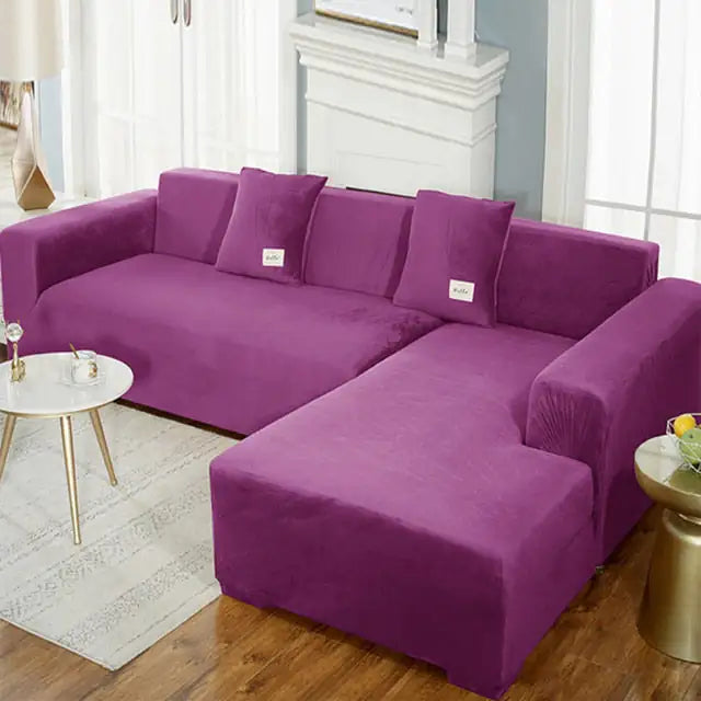 Introducing L Shaped Sofa Velvet Covers for Living Room. These trendy and luxurious slipcovers offer superior protection to your furniture from spilled liquids, stains, wear and tear. This is the ultimate economical solution for your regular use and ideal if you own pets or children. Our covers feature an elastic band and strap fastening closure at the bottom that ensures the perfect fit and does not cause displacement. The velvet fabric provides enough coverage to conceal what lies underneath giving a dramatic effect to your living area in minutes. They are machine washable and wrinkle-free, so you don't have worry about washing or ironing it from time to time! Now you can give a new look to your sofa with ease and manage it like new without investing in a major overhaul project. Shop now from our unique collection of sofa covers; spruce up your living room!