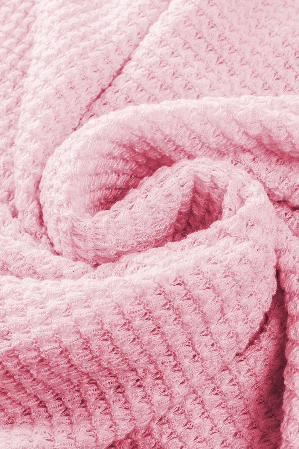 Waffle-Knit Collared Neck Long Sleeve Shirt